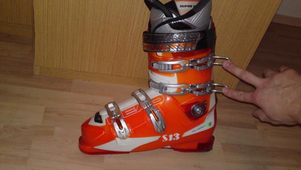 Prodám boty Head S13, Super bota, velikost 30,5cm, ocelové přesky, vrchní dvě ještě výklopné pro snadnější a co nejlepší dopnutí, vrchní pás dvojitý, pro lepší dotažení. Možnost různých nastavení podle nohy lyžaře. Používané cca 10 dní v předloňském roce, potom úraz kolene, dnes už nemohu jezdit proto prodávám. Zachovalé, lehce poškrábané jen na vnitřní straně. Původní cena 8000. Flexindex 100+.