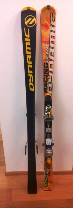Prodám lyže Dynamic GS VR27 včetně vázání, dl.163cm, r=14,5m, zachovalé, cena 1500,-Kč