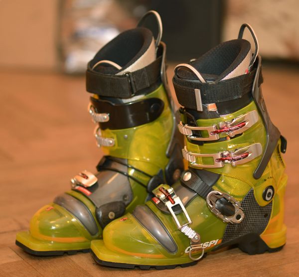 Prodám telemarkové boty Crispi XR Carbon velikost MP 29 (botu mám 44-45). Čtyři přezky, karbonové boční výztuhy. Chodící mód a dva stupně fixace náklonu. Barva žluto-zelená transparentní. Boty mají týden starou vnitřní botičku od Garmontu. Cena 5000 Kč.