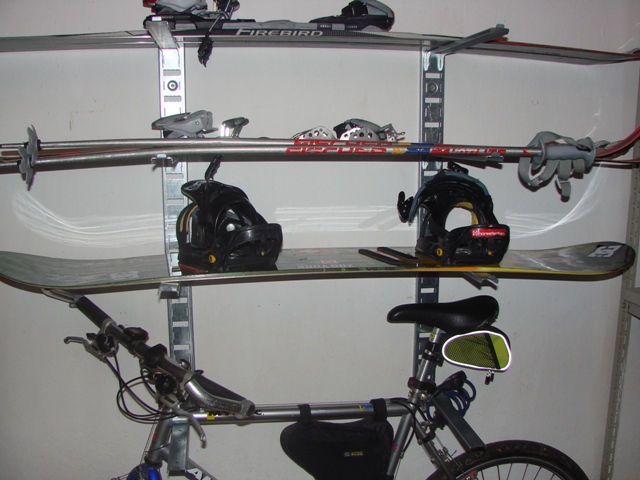 Univerzální polohovatelný držák z pozinkovaného plechu. Využití: na lyže,SNB,sportovní potřeby a další všestranné využití v garáži , dílně , zahradě. Vertikální stojky z plechu tl.2mm délky 950 /1200/mm přivrtány na zeď /2x2 hmoždinky + šroub -součást dodávky/. Do těchto se zasouvají ramena tl.1,5mm délky 400mm,která se v případě nevyužítí vysunou a netrčí do prostoru.Ideální montáž na zeď pod strop, max. využito místo nad hlavou.Na jedno rameno se vejdou 2 páry lyží. Nic není svařováno, přitom dostatečná tuhost a stabilita. sada A: 2 stojky/950 mm/ + 8 ramen /8 párů lyží/ - 420 Kč + dobírka sada B: 2 stojky/1200 mm/ + 10 ramen /10 párů lyží/ - 520 Kč + dobírka Je možno reagovat na individuální požadavky a počty kusů v sadě přizpůsobit. Množstevní slevy.Druhy lyží: